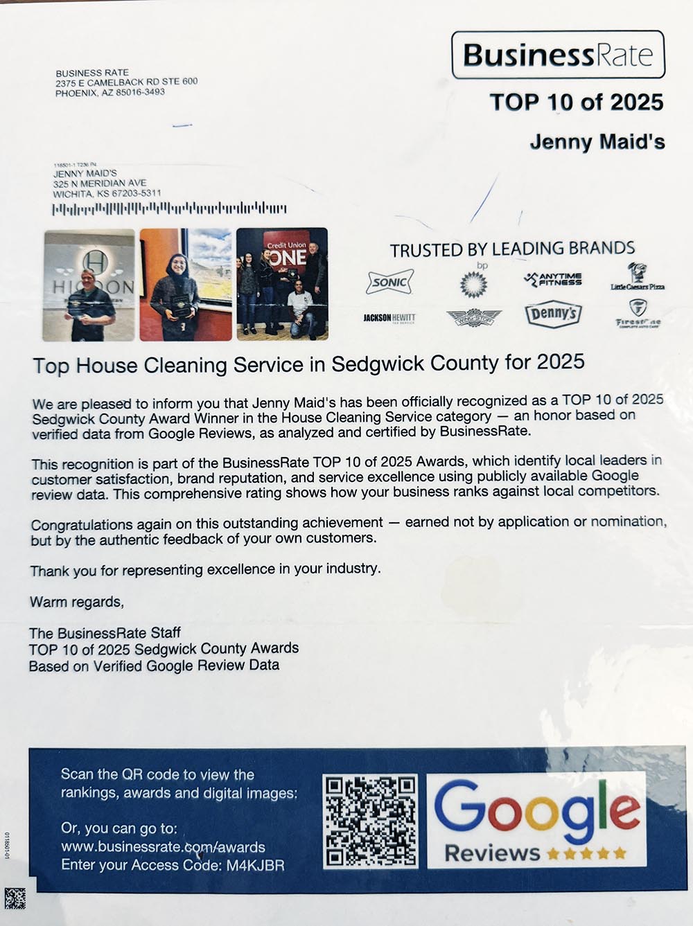 Jenny Maids is proud to serve homeowners across Wichita and the surrounding areas with dependable, detail-focused cleaning services. We believe a clean home does more than look good—it creates peace of mind.